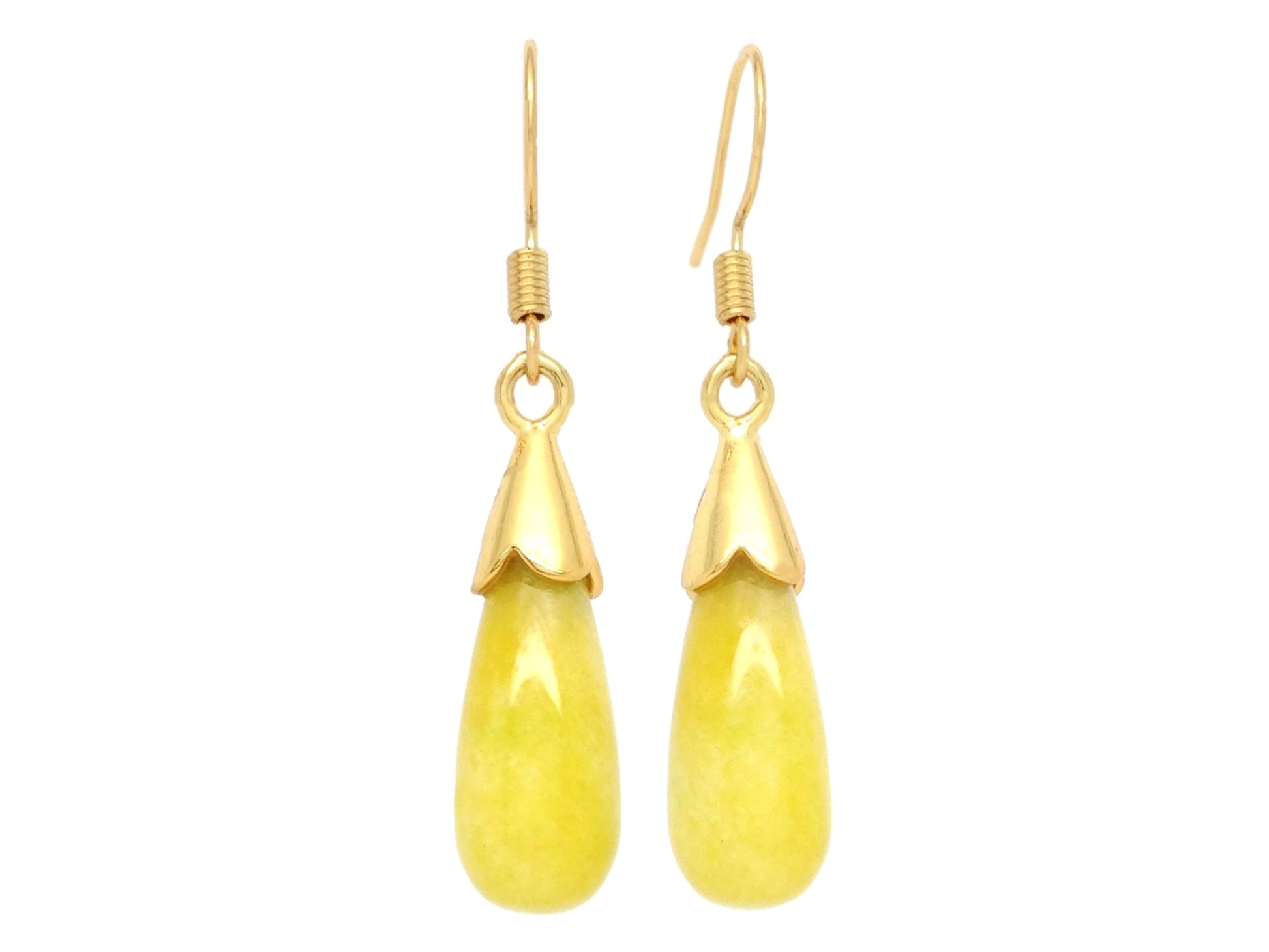 - 18ct Yellow gold plated drop dangle earrings with teardrop yellow moonstones.
